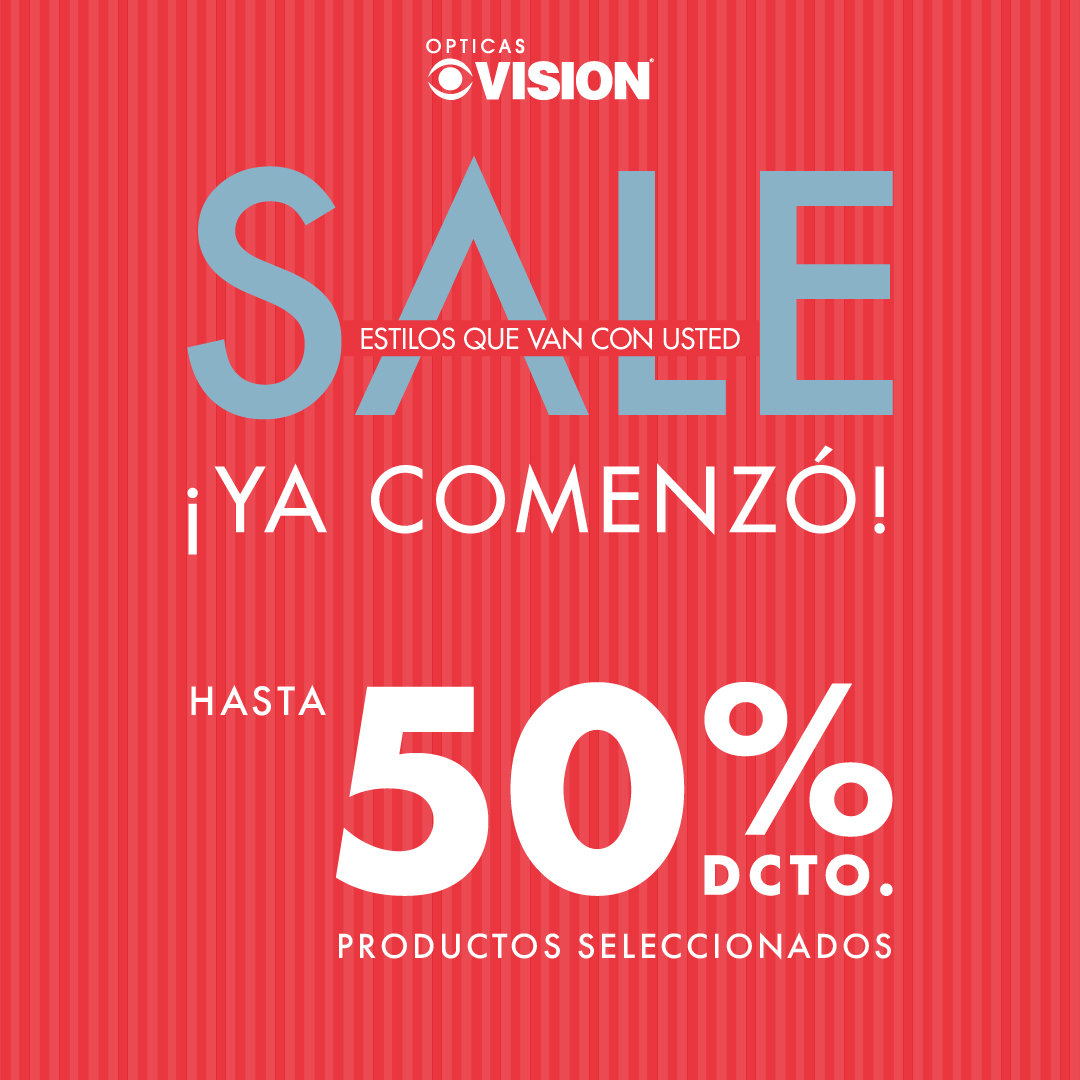 Obtenga hasta un 50% de descuento en sus aros oftálmicos o anteojos de sol seleccionados. Adicional, obtenga un 20% de descuento sus lentes graduados. Promoción válida en tiendas Ópticas Visión desde el 23 noviembre hasta el 01 de diciembre del 2025 y/o hasta agotar existencias. Descuento no aplica accesorios y/o líquidos. Promoción sujeta a disponibilidad de inventario. Los descuentos aplican sobre precio de etiqueta en monturas oftálmicas y gafas de sol, debidamente identificadas. Descuento no acumulable con otras ofertas, cupones, promociones y/o convenios vigentes. En caso de requerirse por parte del cliente devolución de dinero o cambio de producto se realizará sobre el valor efectivamente pagado y bajo previa verificación del producto. Promoción no aplica con las marcas Prada, Prada Sport, Cartier, Persol, Ray Ban, Oakley identificadas con etiqueta plateada.